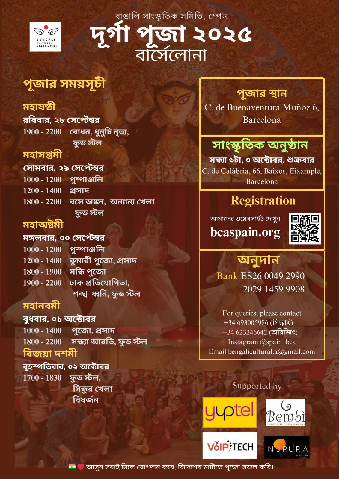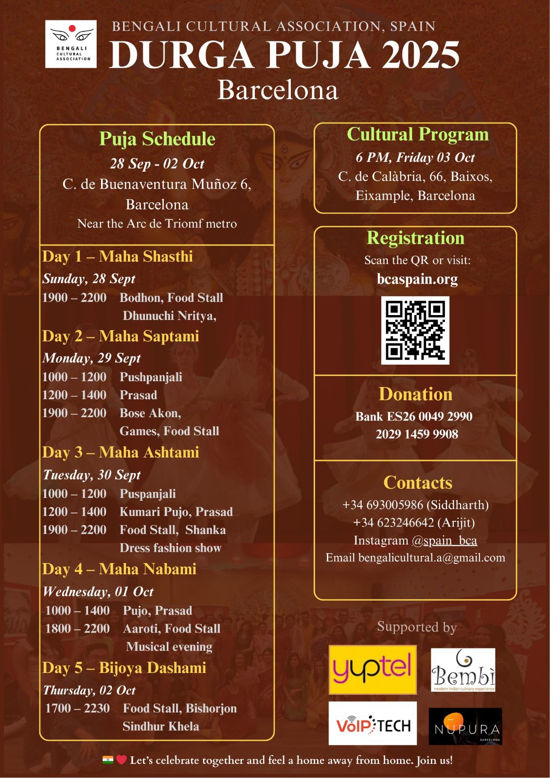 Complete timeline of Durga Puja 2K25 celebrations in Barcelona